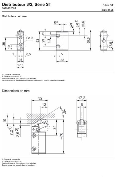 DISTRIBUTEUR PNEUMATIQUE AVENTICS 3/2, Série ST – 0820402002
